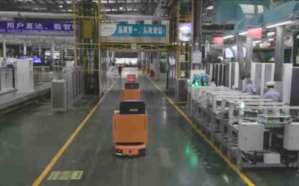 为车载冰箱物流配送打造的智能解决方案,,包含产中物流通过潜伏举升AMR搬运至线边,,,,产后成品物流智能仓储,,,流程包含产中物流智能齐套入库,,,线边安灯叫料AMR智能配送至线边,,,,成品入库、、、、出库,,,通过无人堆高车机器人,,智能仓储管理替代人工作业管理,,,实现更高存储、、、、更高效率、、、、更具柔性化的解决方案。。。